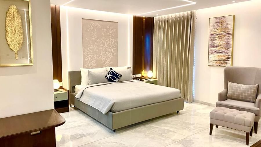 Spread across 660 sq. ft., the Deluxe Suites are designed for comfort and luxury. These spacious accommodations can host 2 adults and 1 child below 6 years while featuring a separate living room.